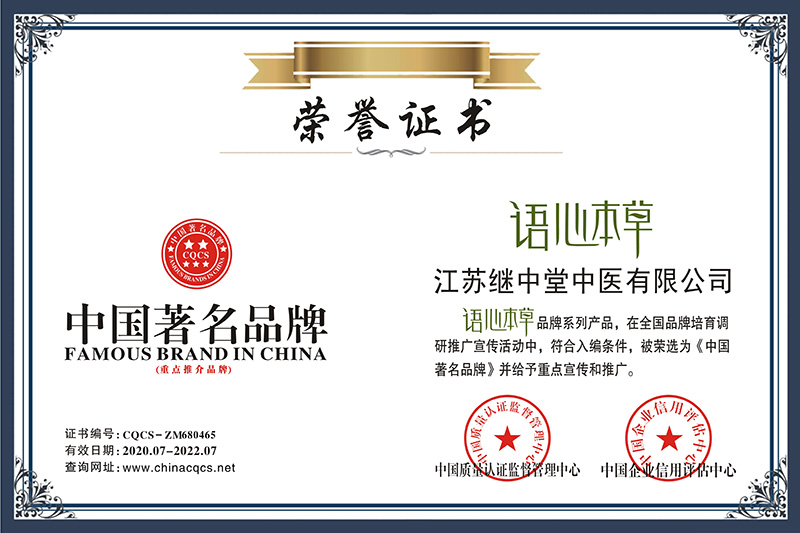 语心本草在全国品牌培育调研推广宣传活动中,符合入编条件,被荣选为“中国著名品牌”